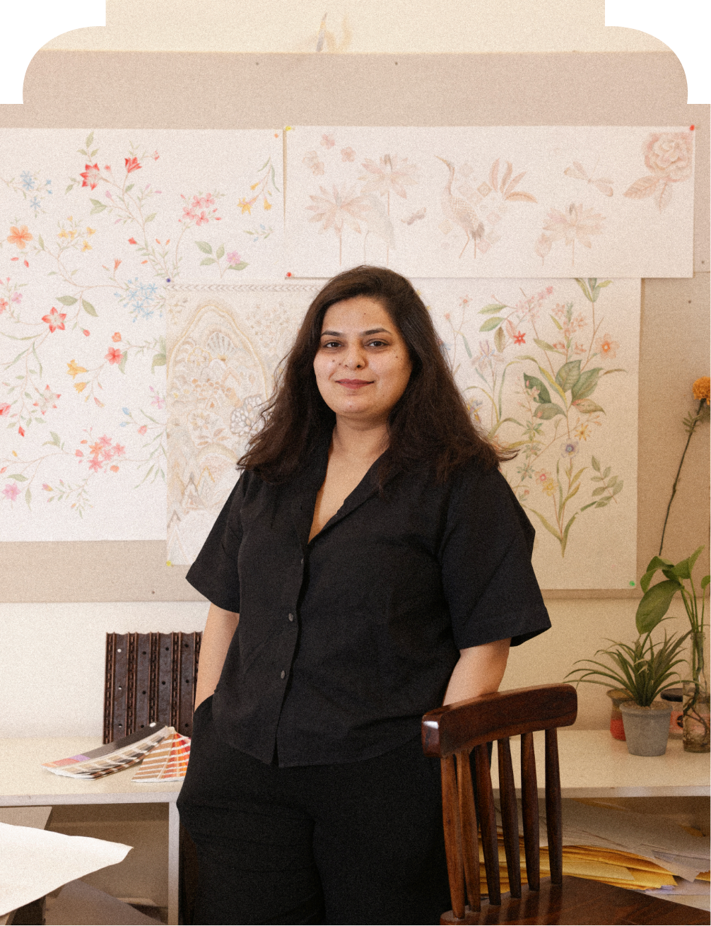 The studio specializes in creating original, hand-painted artworks and provides comprehensive design and printing solutions for the Indian and international markets. It offers a detail-oriented and process-driven service, from concept articulation to design development and delivery, in textiles, wallpaper, tableware, home furnishings, and stationery. Since its inception, the studio has expanded to include commercial interior styling, hand-knotted rugs, and wedding solutions in collaboration with other design studios.