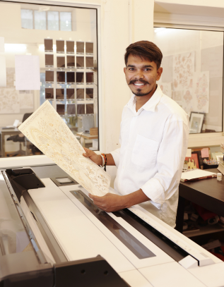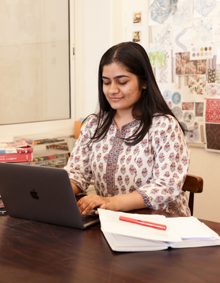 Miss Lad graduated in fashion design from DY Patil University, and is skilled in both digital and hand drawing with a strong passion for Indian textile crafts and techniques.