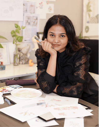 Khushi is a junior designer and illustrator at the studio with expertise in both hand painting and digital illustration. Always eager to expand her skills, she spends her free time creating fashion illustrations and portraits, continuously exploring design styles beyond her work.